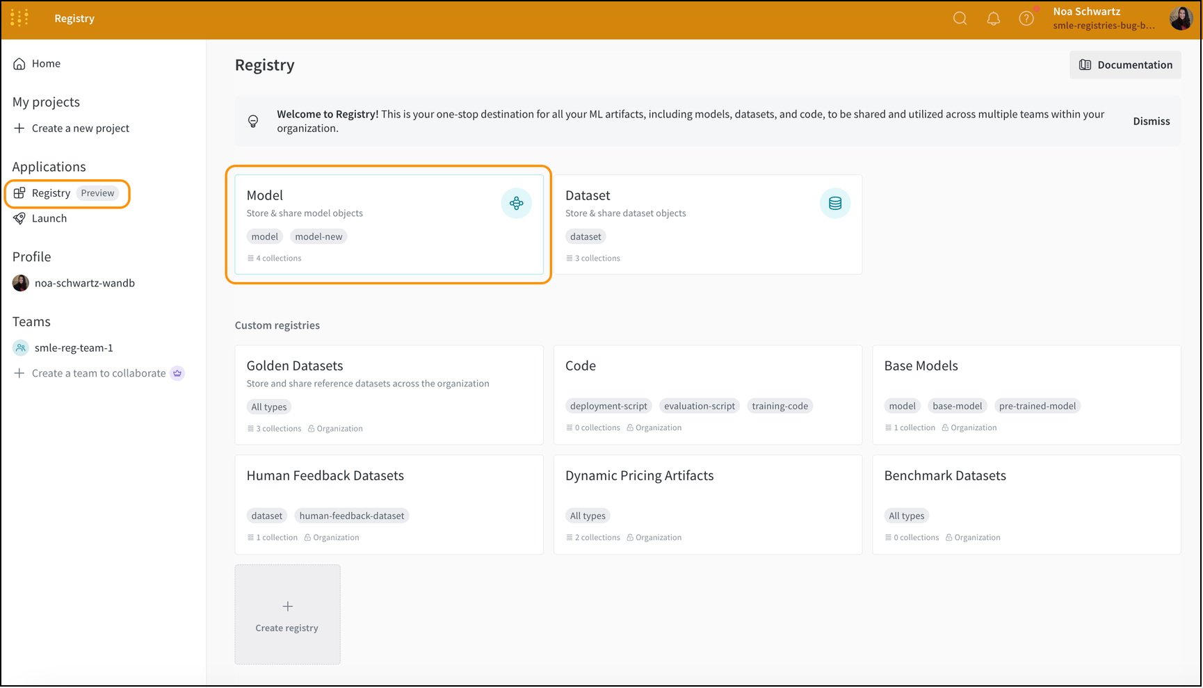W&B Registryは現在パブリックプレビュー中です。有効化の方法については、