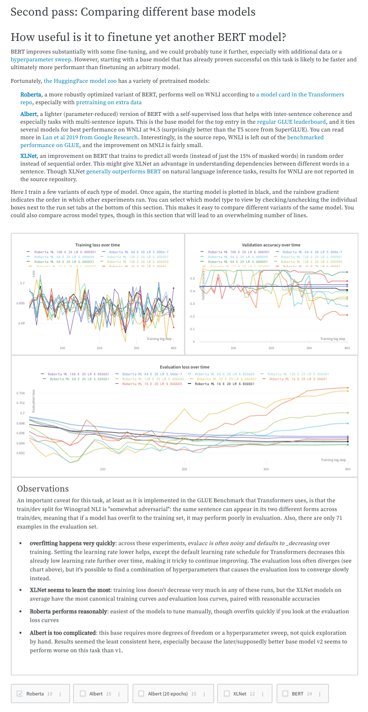 Jupyter 또는 Colab 노트북에서 코드를 실행하는 경우 트레이닝이 끝나면 wandb.finish()를 호출해야 합니다. 이렇게 하면 wandb run이 완료되고 tensorboard 로그가 W&B에 업로드되어 시각화할 수 있습니다. .py 스크립트가 완료되면 wandb가 자동으로 완료되므로 이는 필요하지 않습니다.