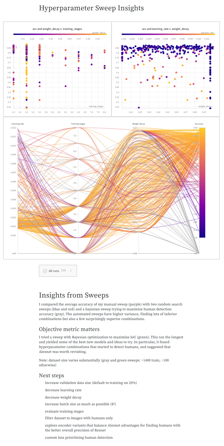 W&B Dashboard를 기계 학습 모델의 결과를 구성하고 시각화하는 중앙 장소로 사용하십시오. 몇 번의 클릭만으로 평행 좌표 플롯, 파라미터 중요도 분석 및 기타와 같은 풍부한 인터랙티브 차트를 구성합니다.