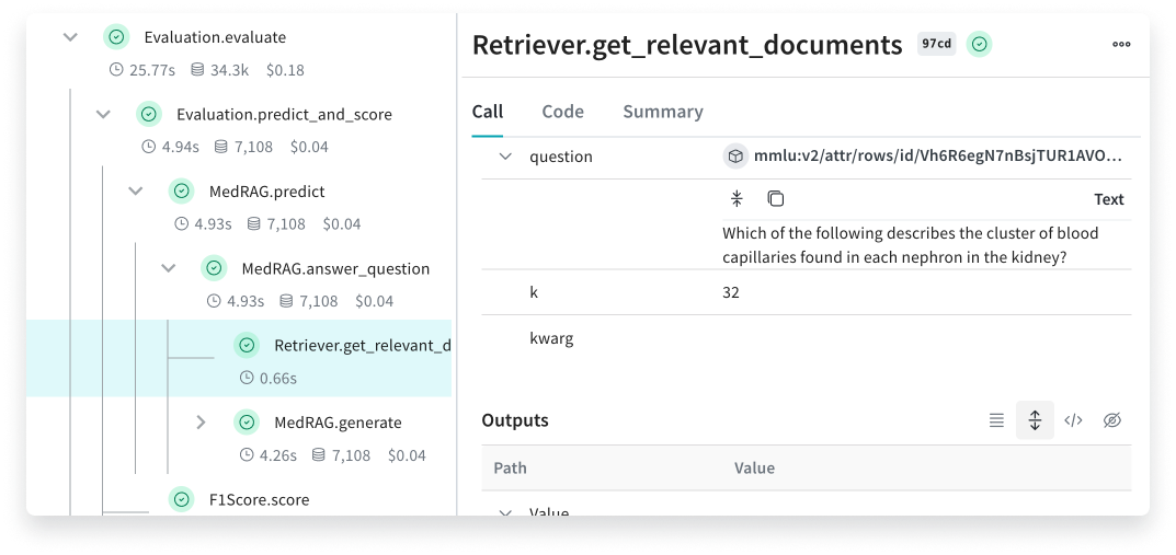 Dot menu: 사이드바에서 행 위로 마우스를 가져가면 왼쪽에 메뉴가 나타납니다. 이 메뉴를 사용하여 run 이름을 바꾸거나, run을 삭제하거나, 활성 run을 중지합니다.